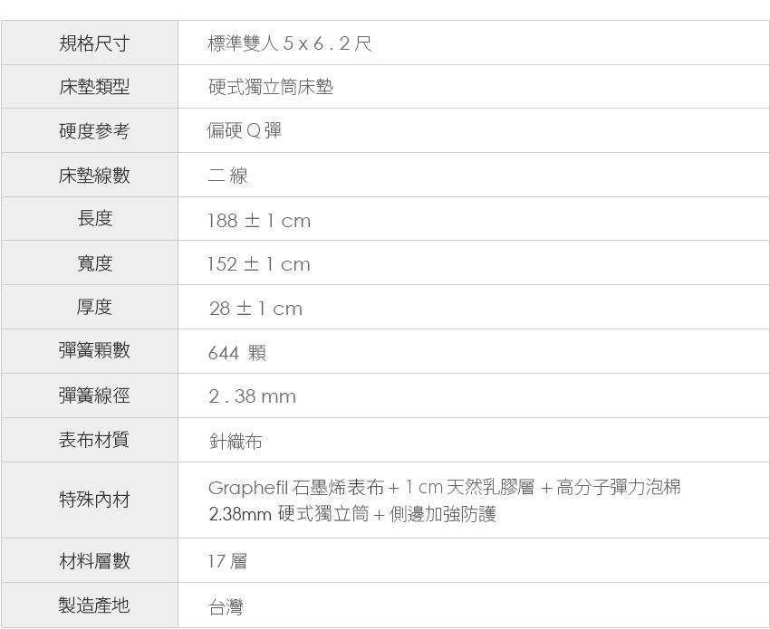 1088 型|Graphefil 石墨烯 乳膠 硬式獨立筒床墊
